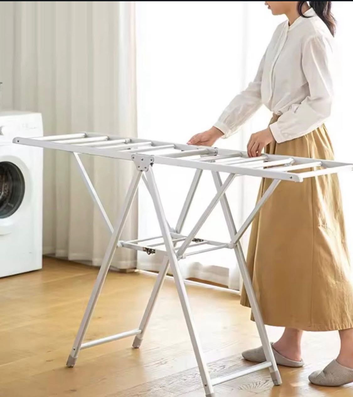 Maximize your laundry space with this premium, foldable clothes rack. Crafted from high-grade stainless steel for superior durability and rust resistance, this rack is built to handle heavy loads while remaining easy to store when not in use. Perfect for modern, space-conscious homes.